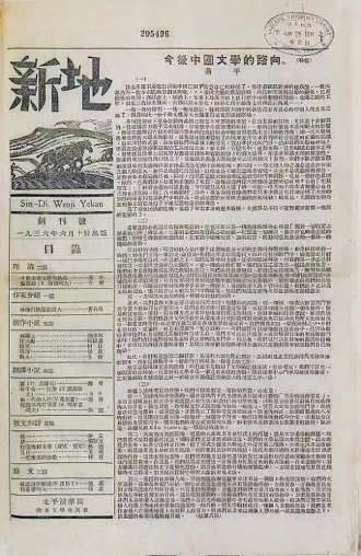 《新地》為清華文學會社刊,創刊于1936年6月10日。雖然其僅出3期即告終刊,但清晰地展露了社員試圖溝通世界文學、“展開一種新的文學運動”的積極努力。
