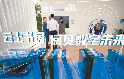 市民在第三屆全民閱讀大會“十里書香長廊·春城書市”上體驗數字閱讀。新華社記者 陳欣波攝