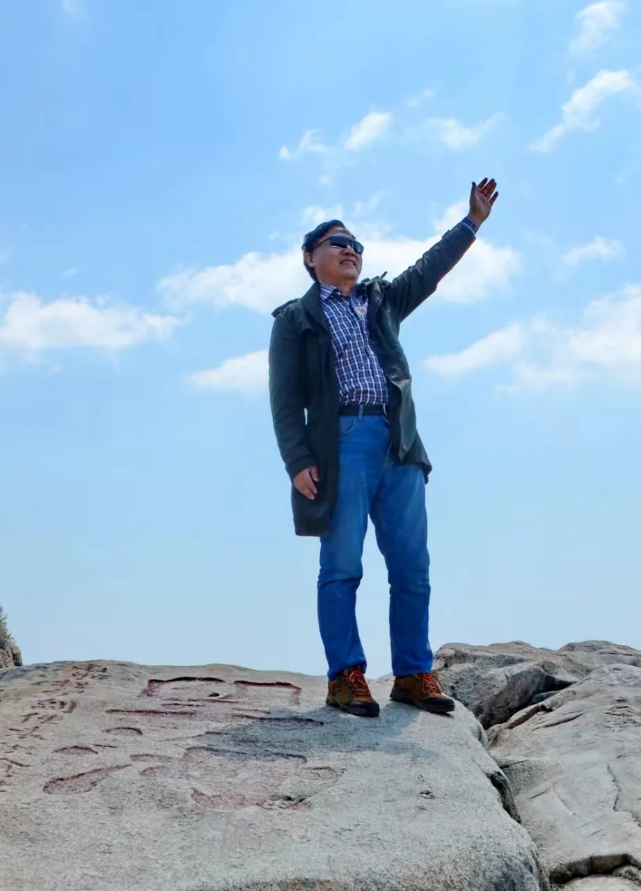 二〇二三年十月二十一日早晨,家住泰山腳下且數十次登上泰山的我,終于第一次真正看到了泰山日出。當一輪暗紅的旭日從鉛灰樣的海中(抑或云海中)跳躍而出的瞬間,極度興奮的我突然動了一個念頭:如果站在“望?!笔峡慈粘?,會是一種什么樣的感覺呢?我似乎預感到將有不尋常的事情發生。