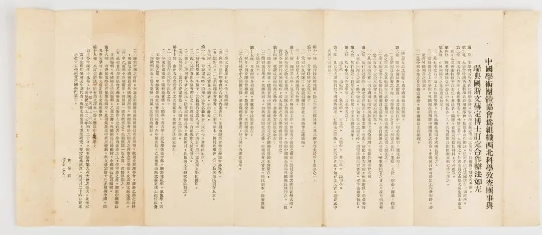1927年4月26日,中國學術團體協會與斯文·赫定在北大三院簽署了合作協議,圖為袁復禮所藏《中國學術團體協會為組織西北科學考查團事與瑞典國斯文赫定博士訂定合作辦法》
