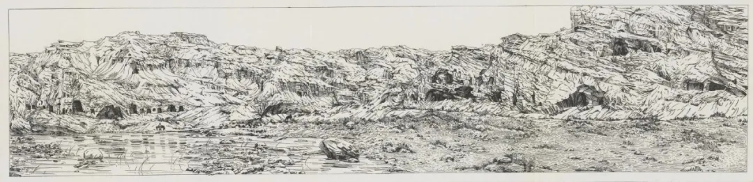 新疆庫木土拉佛洞(鋼筆畫),載黃文弼著《塔里木盆地考古記》(1958)
