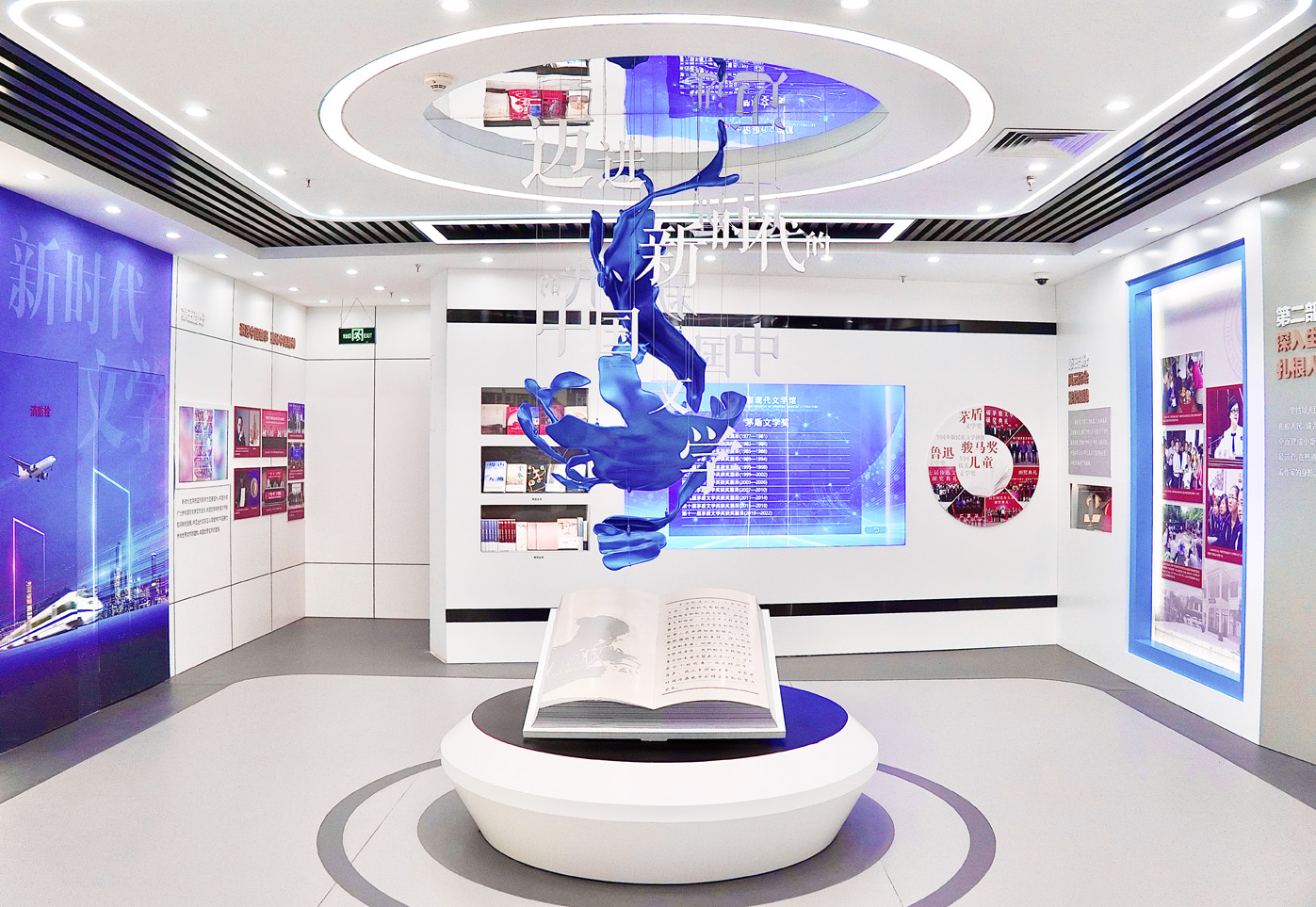 圖為中國現代文學館“邁進新時代的中國文學”主題展。該主題展著重展示了黨的十八大以來,在以習近平同志為核心的黨中央高度重視和關懷下,廣大作家齊心協力、砥礪奮進,迎來了新時代中國特色社會主義文學事業繁榮發展的新局面。王玥 攝