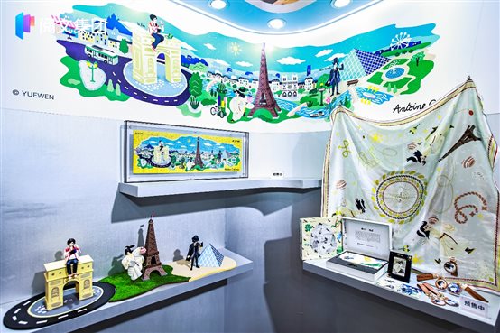 閱文還首次展出了一系列中法文化合作的IP衍生品。今年,閱文與法國埃菲爾基金會、中法品牌美學中心聯合發起“閱賞巴黎”計劃,邀請法國知名插畫師安托萬·卡比諾(Antoine Corbineau)操刀設計,將《慶余年》范閑、《全職高手》葉修、《詭秘之主》克萊恩·莫雷蒂等中國IP角色融入埃菲爾鐵塔、凱旋門、盧浮宮等法國地標,形成東西方文化交融的獨特藝術作品,并進行IP衍生開發。