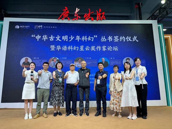 8月17日, 2024南國書香節主會場還舉辦了“中華古文明少年科幻”叢書簽約儀式暨華語科幻星云獎作家論壇。華語科幻星云獎與少兒科幻星云獎創始人董仁威,新世紀出版社社長陳少波、副總編輯秦文劍,少兒科幻作家趙華、馬傳思、尹代群、路航等與會。