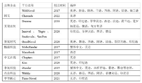 中國網絡文學出海企業可大致分為三類:一、傳統的數字閱讀企業,如掌閱科技、閱文集團、點眾科技等,這類服務商牢牢扎根在國內數字閱讀市場,最早布局網絡文學出海業務,擁有海量的網文作品、龐大的作家、編輯隊伍以及成熟的商業運營、盈利模式。二、專注于開拓海外數字閱讀市場的新興廠商,如均成立于2020年的新閱時代和無限進制。企業創建者多有網文行業從業經驗,基于對海外市場的精準把握以及富有吸引力的原創內容,此類企業已成功開拓海外市場,短時間內成為網絡文學行業的出?!皹藯U”。三、國內互聯網企業,如字節跳動推出Fizzo Novel主攻北美和東南亞市場,小米上線Wonderfic,支持英語、西班牙語、印尼語等多語言版本,它們借助技術和資本優勢入局網文海外探索。綜上,深耕數字閱讀領域的頭部企業,基于內容、團隊和商業模式優勢,在網文出海上占得先機;互聯網大廠憑借先進的互聯網技術,通過免費閱讀和買量營銷等策略,與前者優勢互補,共同構建了具有差異化特點的多語種網文出海平臺矩陣。