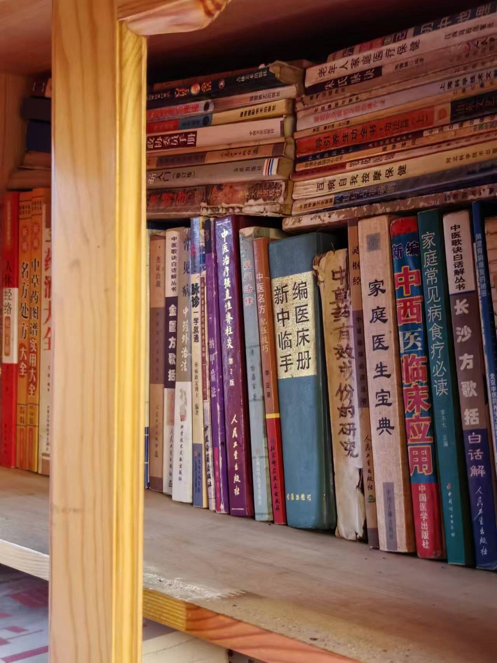 子塵的書架,以文學、中醫書籍為主。