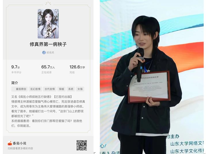 紙老虎出生于1998年,番茄小說簽約作家,2022年開始創作。兩年的時間里,紙老虎從護膚品公司的一名職員,轉型成為一個頗受關注的新銳網絡作家,代表作《修真界第一病秧子》(又名《且渡無雙》)多次登上番茄小說巔峰榜,入選第三屆網文青春榜年榜作品,并即將出版實體書。平穩的簡介像是又一個年少成名的“走花路”故事,但紙老虎內心的無數糾葛與劇烈的重生陣痛,也許只有她自己知道,又或許已經全然地溶解在了她的小說之中。