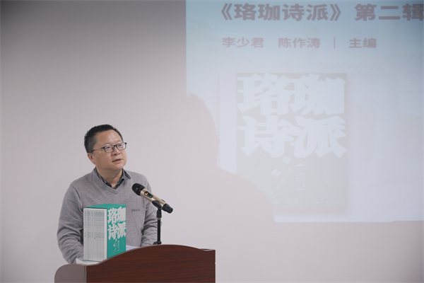 李少君在《珞珈詩派》第二輯首發式上。李少君,詩人、作家,出生于湖南湘鄉,畢業于武漢大學新聞系,曾任《天涯》雜志主編,現任《詩刊》雜志社主編