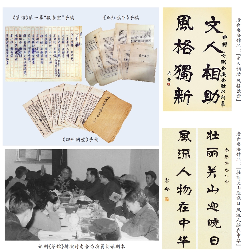 學術界曾對現代文學史上“魯郭茅巴老曹”的排位有過爭論,將老舍定位在文學大師或文學大家之列,毫無異議,只是在具體論述之中,常將“魯郭茅”置于博大高深,談及“巴老曹”則偏于特點和個性。作為偉大作家的“巴老曹”,當然也以文學的豐富與復雜垂范后世。1944年,邵力子、郭沫若、沈雁冰、陽翰笙、馮雪峰等發起紀念“老舍創作生活二十年”,在活動“緣起”里,說老舍的文學創作為“新文藝史上劃出了一個時代”,成為“新文藝的一座豐碑”“將與中國新文藝日益堂皇而永垂不朽”;還說老舍“無論在做人與做文上,都為我們創作出更多不朽的范本”,而使“新文藝愈加充實光輝”。今天重新讀到這些話,仍有莫名的感動和心動。老舍積極投身社會時代變革,以文學創作和文學教育活動等文學行為實現人生價值,展現出精神大境界和文學大格局。