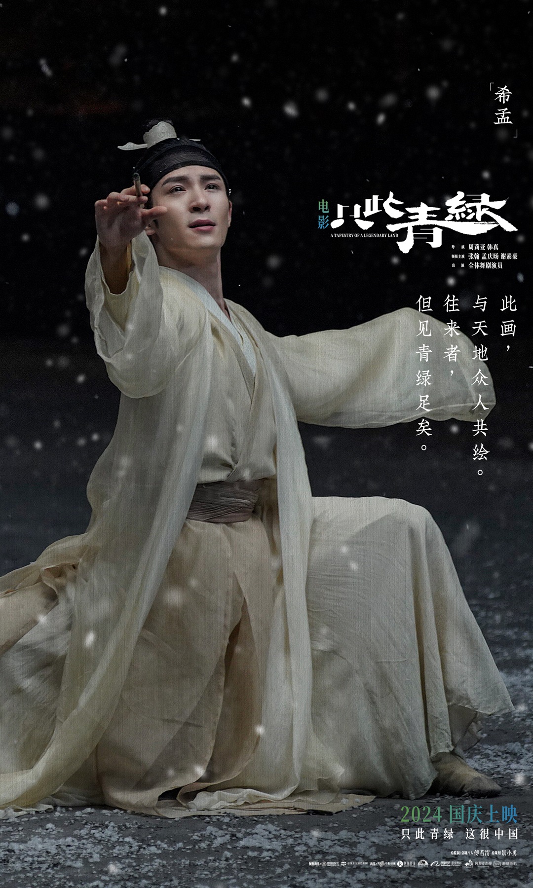 “無名無款,只此一卷。青綠千載,山河無垠?!贝笃聊粷u暗,字幕浮現:“只此青綠”。