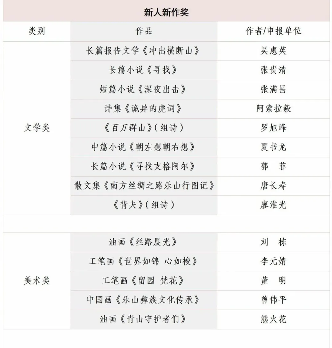 2024郭沫若文學藝術獎設文學大獎、藝術大獎、新人新作獎三個子項,自2024年6月14日發布公告,共征集作品108件,截至目前,已完成各獎項的評審工作,現將入圍作品予以公示,接受社會公眾監督。公示期為5個工作日(即2024年10月14日至10月18日),在此期間,凡對入圍作品的版權、內容和有關問題持有異議者,請以書面或郵件反映的形式(信函以寄出日郵戳為準)向組委會辦公室提出。以單位名義反映情況的材料要加蓋單位公章,以個人名義反映情況的材料要署真實姓名,并提供聯系方式,匿名來信來件不予受理。