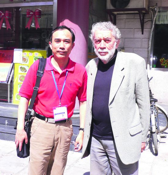 那是在1984年。他來中國訪問,在北京期間,我陪他及夫人游覽故宮。從三大殿出來我們坐在一個石頭臺階上歇腳。正好,對面不遠處有一老一少兩個中國游客,也席地而坐休息。老的約摸有五十來歲,黑紅臉,戴一頂舊草帽,粗布衣衫,年輕的二十來歲光景,瘦瘦的,一件白的確良襯衣,像是爺兒倆模樣。見我們正談笑風生,這一老一少便目不轉睛地盯著我們看。這時,我對羅伯-格里耶說:“瞧,有人在注意你了?!?羅伯-格里耶仔細打量了一會兒坐在十米開外的那二位,不慌不忙地說:“你是說那師徒倆啊?!?他還補了一句“老先生恐怕是個搞藝術的吧?!焙髞?,當我客客氣氣地詢問那位老先生的職業時,他回答說,他是山東某地一個師范學校的老師,教的是繪畫。羅伯-格里耶的眼睛,這也太神了吧。我雖然知道作家的眼睛一般都很敏銳,但能一眼看出對方是個“搞藝術的”,那眼睛實在“毒”。作為法國新小說派的領袖人物,羅伯-格里耶作品的出名,在于對物的“純客觀”描寫,對物的“準確”記錄。也許是他早年當過農藝師,后來又是電影家的緣故,他的小說作品對物的描寫特別細致。我想,這與他敏銳的觀察力、與他特“毒”的眼睛有關。