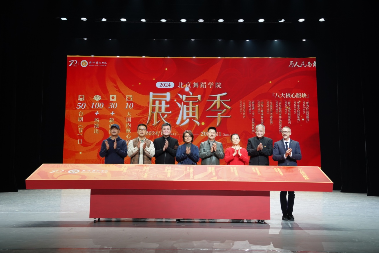 儀式現場,北京舞蹈學院教務處處長程宇,中國舞黨總支書記、中國古典舞系主任胡淮北,外國舞黨總支書記張立軍,創意學院黨總支書記、院長張云峰,人文與教育學院黨總支書記兼人文學院院長李馨,繼續教育學院與舞蹈考級院聯合直屬黨支部書記兼舞蹈考級院院長劉軒,學院特聘教授卓依·馬可尼里,北京舞蹈學院附屬中等舞蹈學校校長白濤共同揭曉“2024北京舞蹈學院展演季”八大精彩板塊。