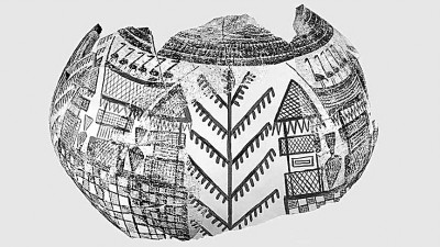 從主題上看,兩河流域彩陶幾何紋飾種類很多,線條多為直筆,以單元重復或二方連續構成圖案整體。其中網紋主題似乎最受制陶工匠們的青睞,貫穿整個彩陶文化期。學者們推測,這一紋飾的出現是模仿了當地特有的籃子編織形態。幾何紋之外,動物、植物主題也有不少。在哈蘇納和薩馬拉文化的陶碗中,都可以看到四只山羊圍成一圈的造型,它們互相追逐,構成一個圓形結構。在哈拉夫文化的陶碗中,能看到在一棵大樹的四周,錯落著幾棟多層尖頂房屋,房頂上站滿了一排鳥,場景宏大,生氣十足。歐貝德文化陶罐上也能看到棕櫚葉和山羊形象。事實上,山羊、大樹、房屋,全都具備當地的特征。與我們今天的認知完全不同,考古證據顯示,史前時期兩河流域的氣候要比現在涼爽,河邊的山坡上還間或覆蓋著草地,植物豐富,山羊、鹿、野豬比比皆是。大約在前陶新石器時代早期(公元前9500—8500年)這里就出現了農業,人們不僅開始栽種大麥、小麥,也馴化了山羊、綿羊??梢源_信,兩河流域的史前彩陶就是在農業文明的基礎上發展起來的。