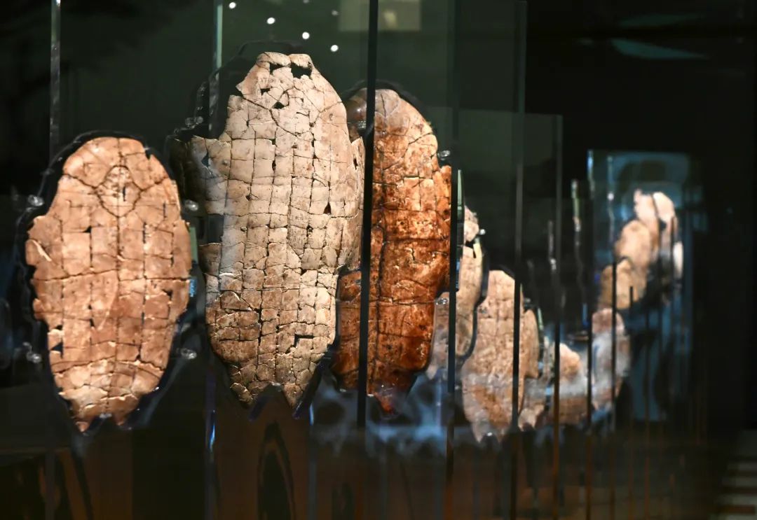在河南的殷墟博物館新館拍攝的考古發掘出土的甲骨文骨片 圖源:新華社