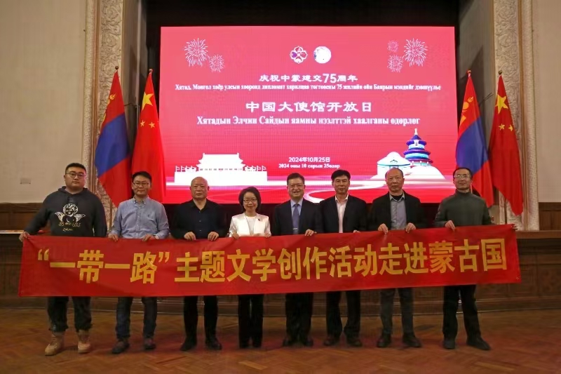 10月22日至29日,由中國作協外聯部指導,蒙古中國文學讀者俱樂部、烏蘭巴托中國文化中心共同主辦的“一帶一路”主題文學創作交流活動在蒙古舉行。龔盛輝、趙晏彪、楊曉升、楊宓、海勒根那、史玥琦等六位作家赴蒙古國深入交流,與蒙古作家、翻譯家共讀詩歌、舉辦文學講座、與蒙古青少年交流、走訪駐蒙中國企業,書寫“一帶一路”建設歷程中的中蒙人民友誼故事,為中蒙建交75周年活動增添了豐富的文學內容。