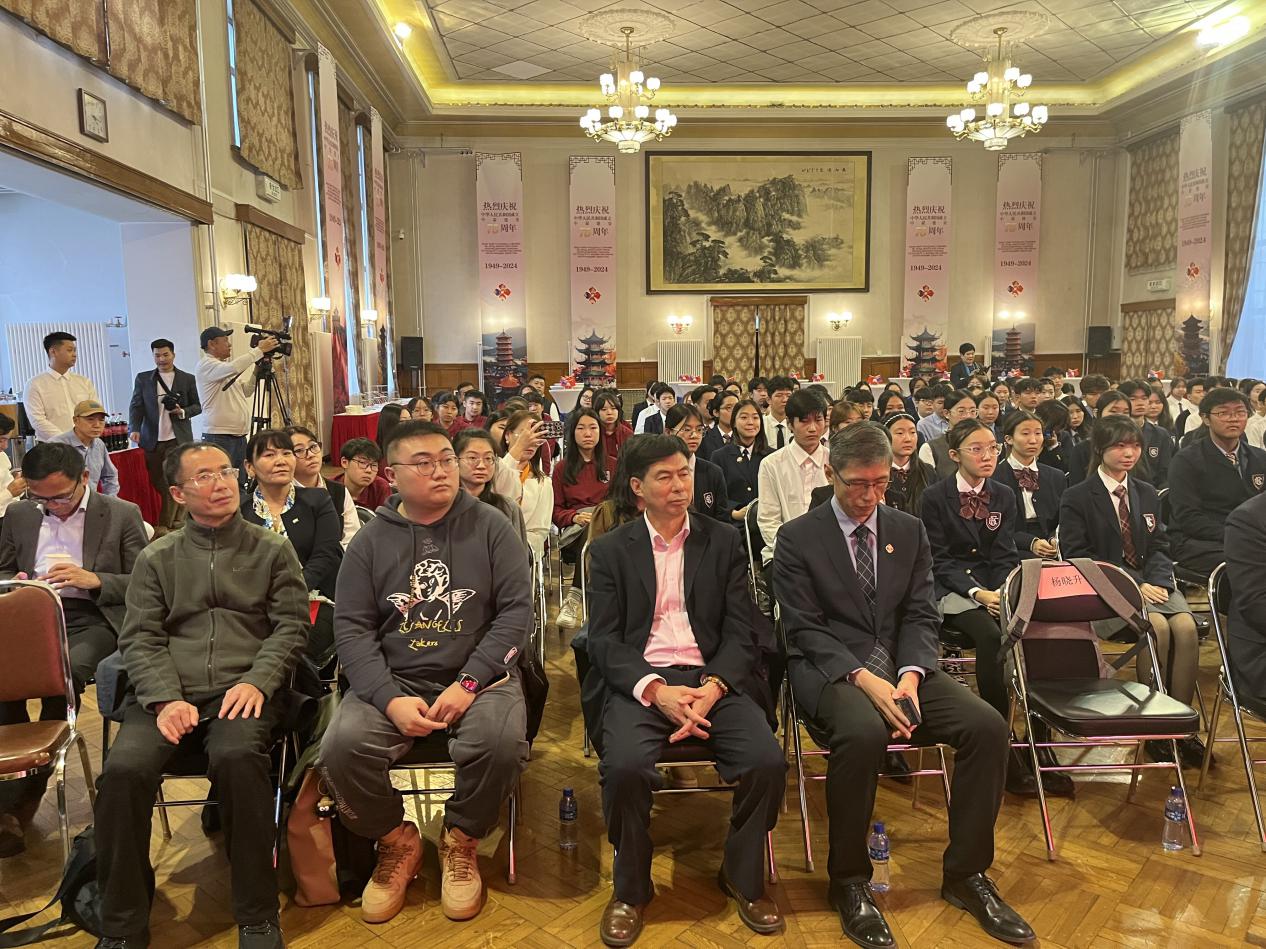 10月25日,中國作家一行受邀來到中國駐蒙古國大使館,參加“慶祝中蒙建交75周年中國大使館開放日活動”,參觀“中蒙建交75周年友誼展和新中國成立75周年主題展”,并與來自烏蘭巴托多所學校的400多名學生代表共同交流。