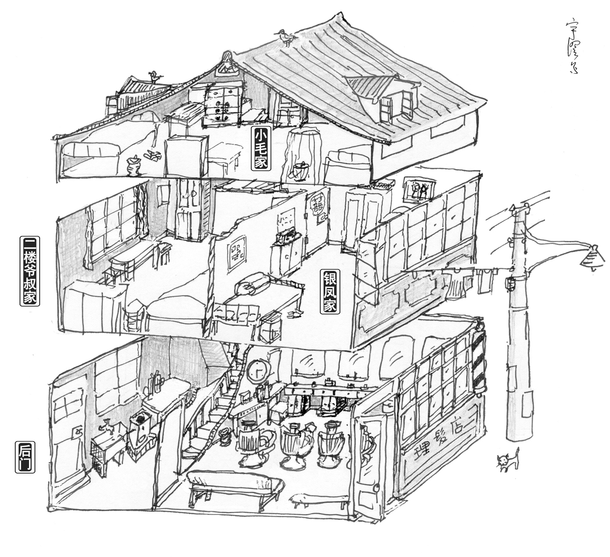 金宇澄的繪畫伊始多少有點傳奇。他從沒學過,就是寫《繁花》時需要地圖,嘗試著畫畫,不想周圍朋友都說好,于是停不下來。