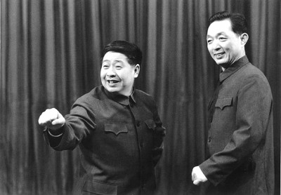 相聲《舞臺風雷》中,馬季、唐杰忠邊唱、邊敘、邊評,表演了胡部長、老支書、支書閨女等角色。圖片由中國曲協提供