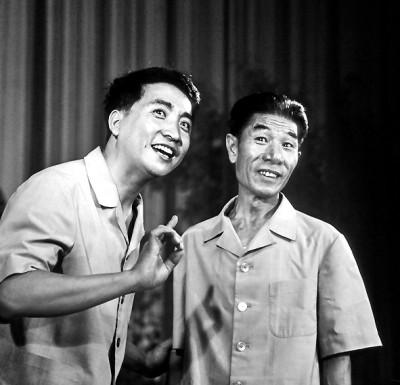 新中國成立后,相聲界對舊相聲進行了凈化語言、提升格調的革新整理。圖為侯寶林和郭全寶演出新相聲。圖片由中國曲協提供
