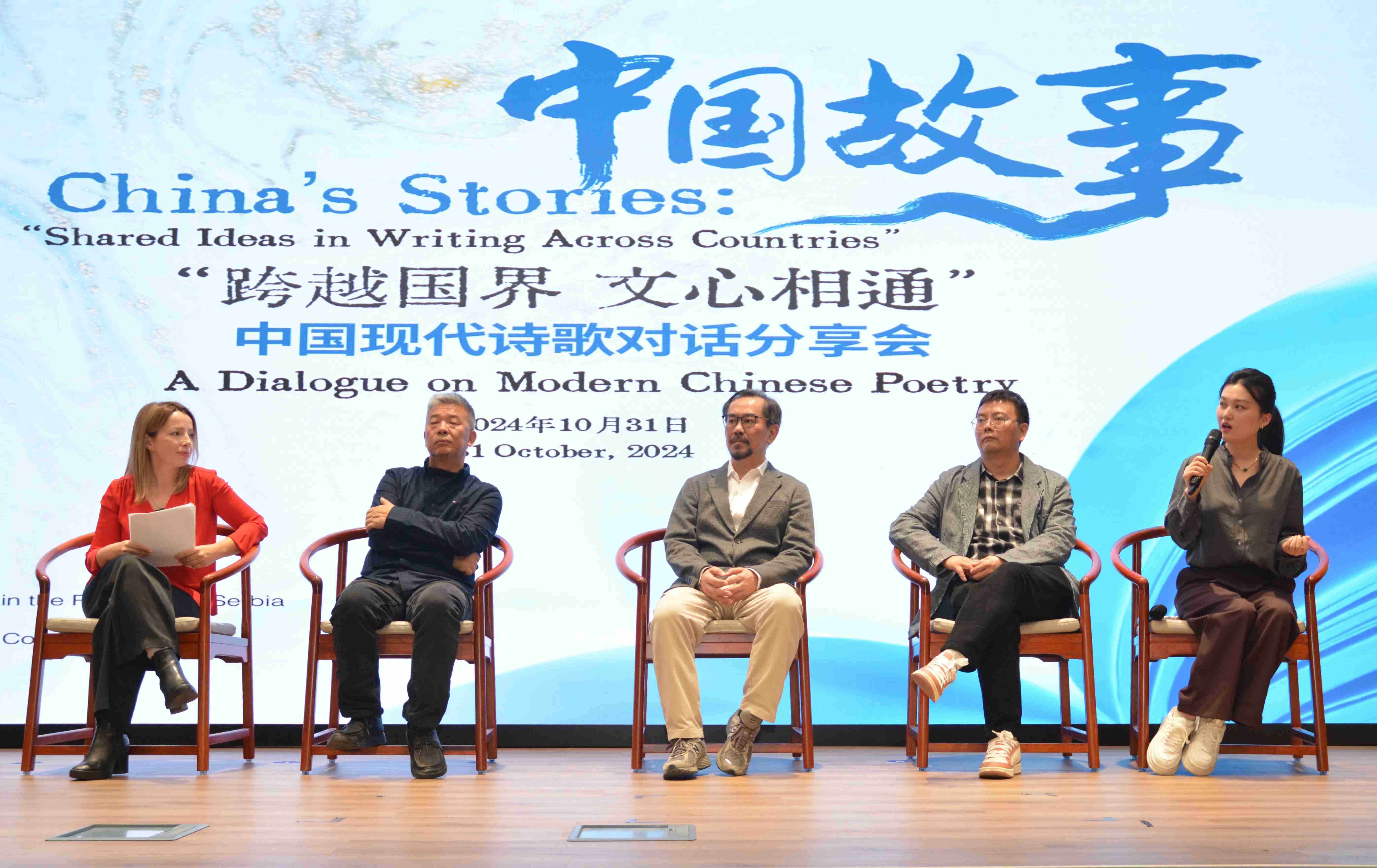 10月31日,由中國作家協會、中國駐塞爾維亞使館指導,塞爾維亞中國文學讀者俱樂部、貝爾格萊德中國文化中心、中國圖書進出口(集團)有限公司承辦的“跨越國界·文心相通”中國現代詩歌對話分享會在貝爾格萊德中國文化中心成功舉辦。由中國作協副主席、書記處書記邱華棟,作家雷平陽、沈葦、李宏偉和戴濰娜組成的中國作家代表團與塞爾維亞讀者代表等150余人深入交流,暢談文學,共敘友誼。