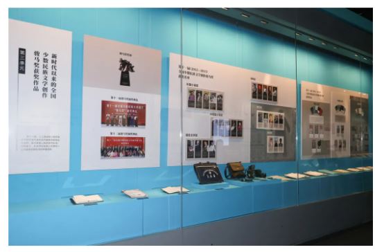 第三展區聚焦新時代以來黨中央對民族工作的高度重視和民族文學事業的繁榮。新時代新征程,民族文學人才輩出,優秀作品大量涌現。