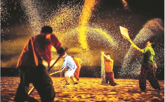 打造一座幻城,一兩個劇場遠遠不夠,得形成陣列,甚至是一座城。我想讓觀眾在這里停留不止一兩天,而是三天、五天甚至更長時間。我想要將“只有河南”建造成一部關于土地的史詩,那片廣袤無垠的土地,承載了數不盡的苦難,也孕育了無數的希望。它講述著傳承的力量,宛如一條無形的紐帶,將過去、現在與未來緊密相連?!爸挥泻幽稀钡氖讏龃髴蚴侨肟谔幠前佼€麥田。在這里,戲劇無處不在。當觀眾走過麥田,穿過328米的夯土城墻,便如同走進一段歲月、一個故事、一段歷史、一個生命。這里是第一場戲的第一個演員,是序幕,也是尾聲。我們從大地走來,望著麥浪滾滾、郁郁蔥蔥,心中一顫,然后在心里播種、生長、收割,釀成酒,一飲而盡。我希望觀眾可以用一整天時間走進這里,看戲、回望,帶著意猶未盡之感離開。深者看深,淺者看淺。無論是誰,希望他都能在這座戲劇之城中找到獨屬于自己的那份觸動與感悟。