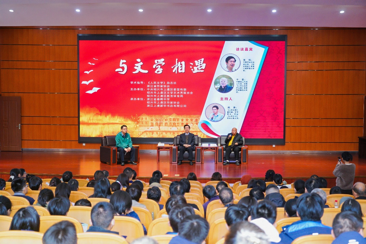 活動期間還舉辦了以“與文學相遇”為主題的名家訪談講座,張煒、于堅與當地的文學愛好者、寫作者以及春暉中學學生近三百人,圍繞寫作、閱讀、生活等問題進行了親切交流。