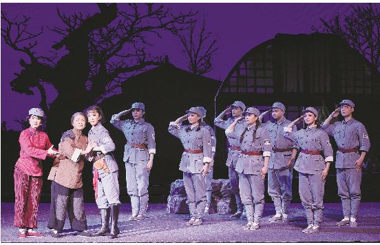 從對人物情感的表達來看,劇作用了相當篇幅書寫圍繞在李林身邊的各種感情:從少小離家時的依依不舍,到犧牲前夕的遙遙牽掛,寫出了她和父母間的血脈親情,凸顯了她僑女的特殊身份;還有她與戰友間的革命友情以及她與百姓間的魚水深情。在大虎不幸犧牲之后,李林和大虎母親劉大娘之間有一段感人的情節安排,一方面寫她對自己草率帶兵的自責和反思,一方面寫劉大娘在喪子之痛中依然給予她寬慰和支持。當大虎的妹妹二妞毅然決定接過哥哥的軍帽繼續戰斗的時候,軍民之間的那份深深的信任讓人潸然淚下。她和屈健之間的感情是全劇重要的一條感情線。二人從朋友,到有情人,最終結成了夫妻。他們既是戰友、戀人,也是殘酷戰爭中彼此生命中的一束光。為了戰爭的勝利,當他們心照不宣向彼此作最后的告別時,不禁讓人想起“生命誠可貴,愛情價更高。若為自由故,兩者皆可拋”的革命詩篇。戰爭無情人有情,以真情寫英雄的敘事視角讓這位有血有肉的女革命者形象躍然于舞臺之上。
