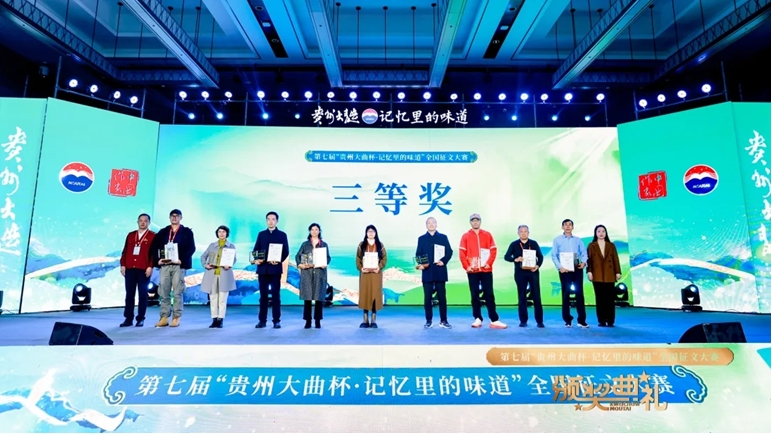 12月3日,第七屆“貴州大曲杯·記憶里的味道”全國征文大賽頒獎典禮在貴州仁懷舉行。