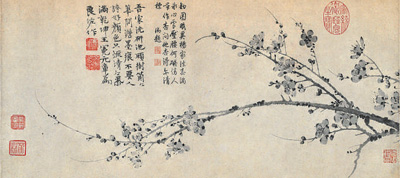 中國畫《墨梅圖》(局部),作者為元代王冕。