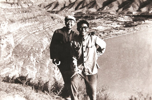 1970年,路遙(左)與曹谷溪在延水關古渡前