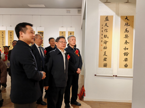 12月13日,由民進湖南省委員會、民進長沙市委員會、長沙縣文化旅游廣電體育局主辦,民進中央開明畫院支持的“遵道而行 同心向黨”——慶祝中華人民共和國成立75周年詹習成師生書法展在北京民進中央開明美術館舉辦。民進中央副主席高友東出席并宣布書法展開幕,湖南省政協副主席、民進湖南省委會主委潘碧靈,長沙市人大常委會副主任、民進長沙市委會主委李平分別致辭。
