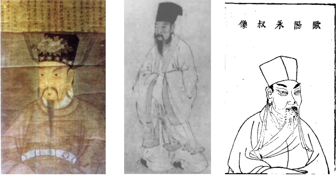 左起依次為圖六:歐陽修(取自黃進德《歐陽修評傳》)、圖七:歐陽修(明代唐寅繪)、圖八:歐陽修(取自明代王圻《三才圖會》)