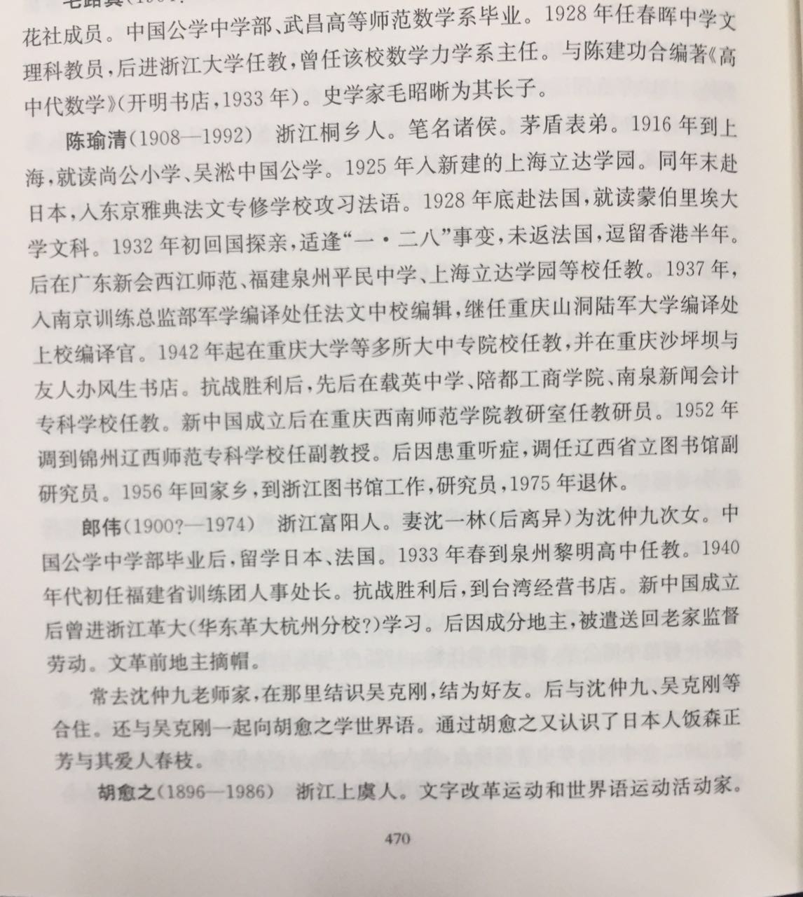 “在《黃源回憶錄》里提到1929年的吳朗西:‘陳瑜清到法國去后,我就搬到吳朗西和郎偉的住所。郎偉是富陽人。吳朗西在上智大學讀德國文學,他們樓上住的是張易,他在高等師范學院讀英文系。吳、郎兩位白天到學校,晚上回來做飯吃?!ɡ蓚ズ髞砼c沈仲九女兒結了婚)