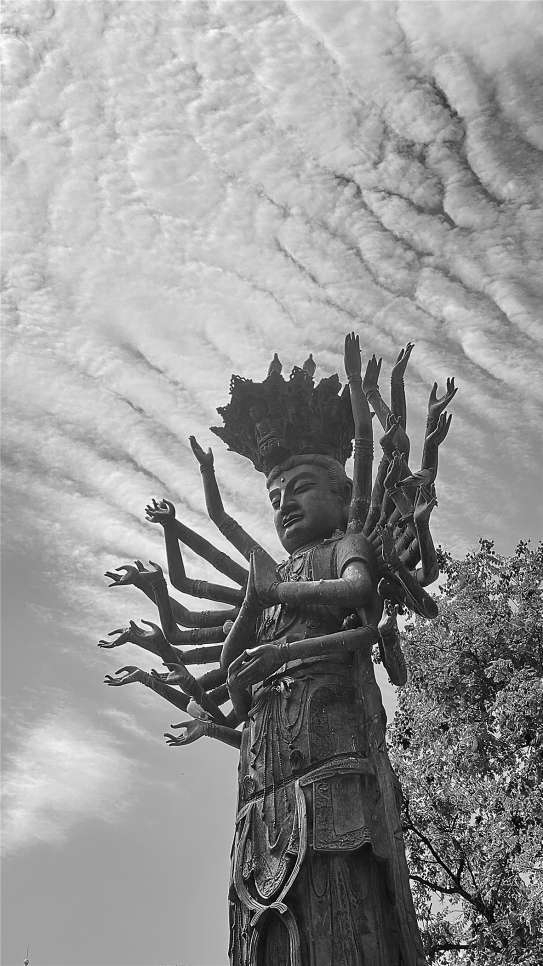小說家吳承恩受佛教思想的啟發,用他的天才想像力創作了《西游記》。吳承恩為神通廣大的孫猴子特意安排了一位神龍見首不見尾的授業恩師,這就是“與天同壽莊嚴體,歷劫明心大法師”的方外人士須菩提祖師。美猴王欲擺脫輪回、逃避生死,乘筏浮于海,尋找長生之道,歷經十余年,從東勝神洲的花果山經南贍部洲,最后到達西牛賀洲,終于在“靈臺方寸山,斜月三星洞”拜須菩提祖師為師。祖師給他起法名孫悟空,教給他七十二般變化和十萬八千里的筋斗云等本領,這才有了他后來大鬧天宮、西天取經、降妖除魔的精彩故事。