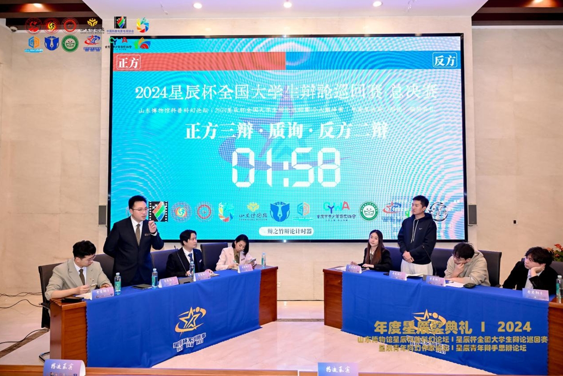 頒獎后,舉行了2024星辰杯全國大學生辯論巡回賽·總決賽暨個人巔峰賽。2024星辰杯全國大學生辯論巡回賽是以社會性和內容性為核心的公益辯論賽事活動,將辯論賽事定位于科普領域中的活動,以主題賽區、地方賽區、資格賽區三大賽區建設星辰杯辯論體系,獲得熱烈反響,已獲來自多所高校社團和多個網絡平臺社群共計超過150個協辦組織的支持,參賽人員涉及超過300所高校,推文視頻關注突破30萬,擁有150+道原創辯題和10+萬字題目設定的星辰杯原創辯題庫。
