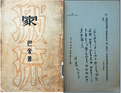巴金的創作舉世矚目,20世紀30年代初創作完成的長篇小說《家》具有里程碑意義,奠定了他在中國現代文學史上的地位。1931年4月18日,《家》(初名《激流》)開始在上?!稌r報》連載,1933年5月,上海開明書店印行單行本初版,問世至今已有90余年。根據人民文學出版社《巴金全集》編者統計,從初版問世至1951年4月,《家》在18年間共印行32版次;1953年6月,巴金對《家》修改后,該書由人民文學出版社重新排版印行,截至1985年11月的32年間,又印了20版次。正如司馬長風在他的《中國現代文學史》中對《家》的評價,它是新文學史上擁有讀者最多的小說之一。