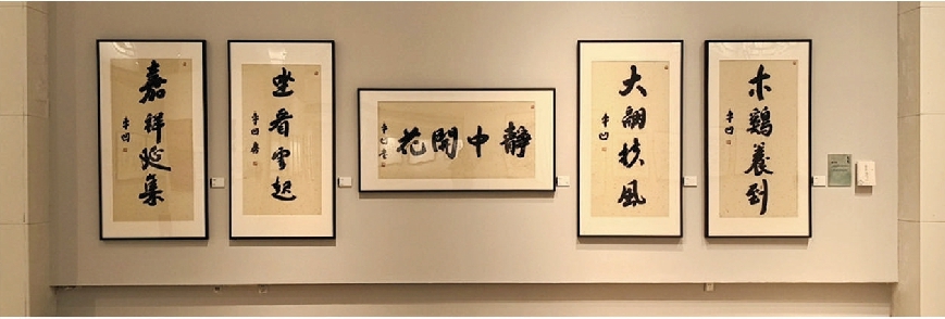 很多作家學者都寫得一手個性分明的好字?!办o中開花”“坐看云起”等一連五幅行書大字,來自賈平凹,字體稚拙厚重,用筆簡單直率,頗見西北質樸、粗獷的氣象。在作品選擇上,他融入自己對于傳統美意的追求,每一幅字都暗含美好生活的祝愿。劉亮程此次展出的作品中,有兩幅大大的“馕”字很是拙樸有趣,并且將同一個字寫出了不一樣的風味。馕是新疆特有的吃食,這樣的書法不由提醒人們,書寫者是一位從新疆走來的作家,其代表作《一個人的村莊》講述的正是新疆天山腳下的那些事。以《主角》《裝臺》等小說聞名的陳彥,帶來的一系列書法靈感直接取自其經典著作,富于巧思。只見“主角”“裝臺”等大字位居作品C位,環繞它們的小字,則來自書中相應的經典橋段,就像文學作品的藝術版本。