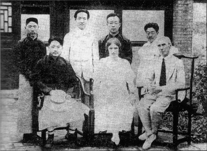 羅素在北京與講學社同仁合影。前排右起:羅素、勃拉克、蔣百里。后排右起:孫伏園、王賡、趙元任、瞿世英。照片由作者提供