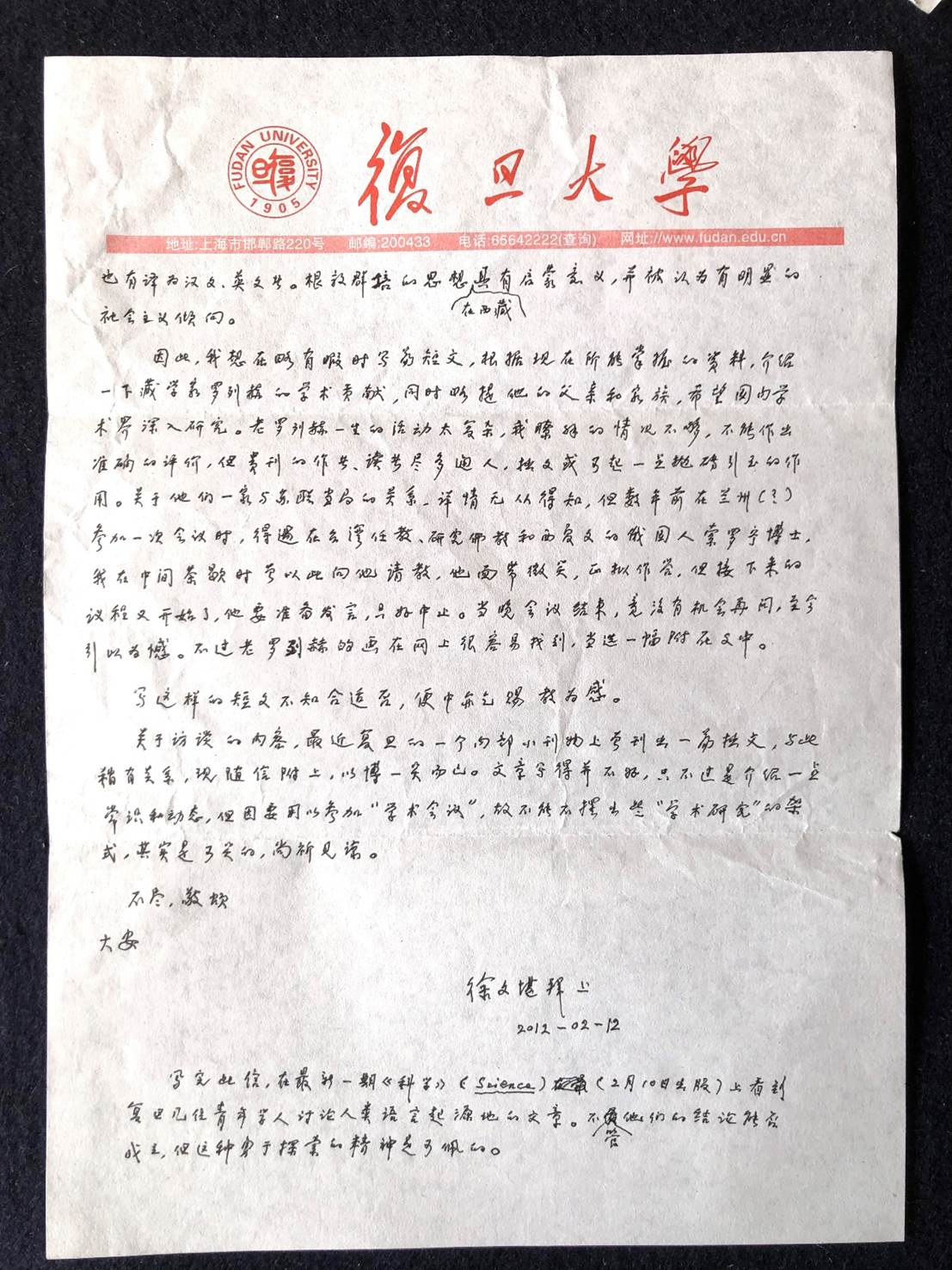 《文匯報》的《文匯學人》改版,我一度參與編輯,徐先生也同樣給予關注和支持。2015年2月12日來信: