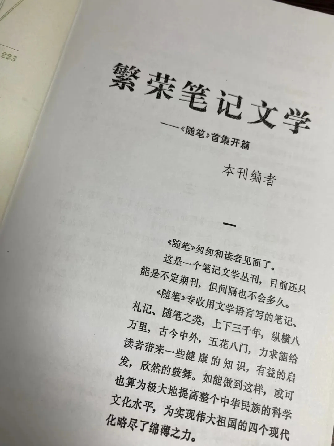 一九七九年六月,《隨筆》第一冊出版了,雖然號稱“小眾”,首印也有四萬八千冊,在當年不算驚人,但今天看來,這個“眾”不小了。由于大受歡迎,《隨筆》與《花城》同樣一冊難求,以至分發到各編輯部的樣刊一再丟失,易征忍無可忍,在樣刊上怒寫了幾行字:“隨筆雅俗共賞,隨便翻翻可以,隨意拿去不行,隨手放回原處!”但一連四個“隨”字,也擋不住“竊書不算偷”的“雅賊”,最后連這本寫了警告字樣的樣刊也不見了。