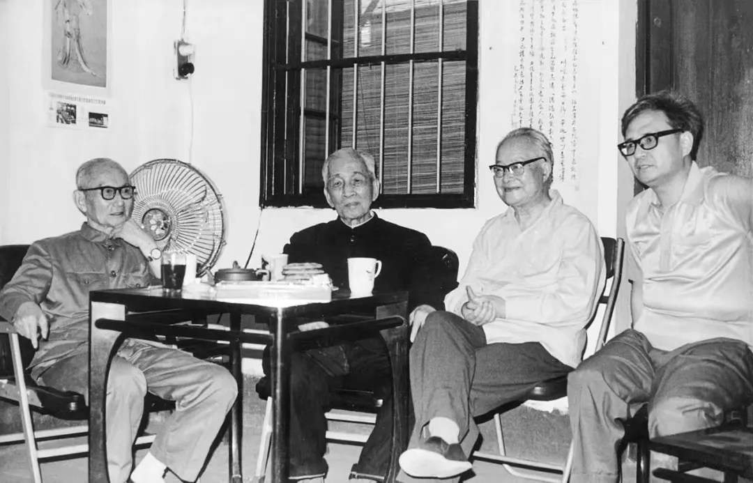 1980年,商承祚、容庚、沈從文、蘇晨(左起)聚于蘇晨家