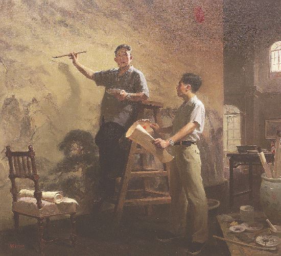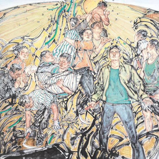 如果以進京作品展作為此屆全國美展的藝術水準刻度,還是頗令人欣慰和驚喜的。在中國美術館中央圓廳的正中,觀眾可以看到表現富有新時代農民精神特質的作品《暖》和《金色土地》。李傳真與吳筱蘅合作的工筆重彩《暖》刻畫細致,展現了當代工筆畫多材料介入形成的深入塑造能力;沈曉明的寫意人物《金色土地》,試圖在造型的生動性與筆墨的寫意性之間構成的一種表現語言的平衡。從前者畫面中農民工在城里歡度中秋節并與遠方村里孩子們視頻聯線的場景所反映的當代農民工生活質量的提升,到后者表現收獲季節農民工再度返鄉收割的景象所營造的金色土地意象,兩幅畫作包含了豐富而深刻的圖像母題的社會學內涵。近年來,大型主題性創作項目也深度影響了當代美術的創作理念,李前的油畫《工人是“天”》所建構的李大釗在北京長辛店傳播革命思想的歷史圖景,展現了歷史畫如何發掘素材還原歷史真實的藝術創造性;而孫妍的雕塑《同唱》以浪漫主義情懷塑造出一群女文工團團員,讓人們感受到革命戰爭年代文藝工作者滿懷青春斗志。不論是歷史人物還是無名戰士,這些歷史題材創作通過人物形象刻畫所體現的主題立意無不具有激發人們繼續奮斗的藝術感染力。歷史畫從來都不完全是對歷史片段的客觀復制,而總是以當代視角賦予其鮮活的現實形態。因此,視覺新質并非只是視覺感觀的新銳,而是對視覺背后深掩的思想礦藏的發掘。