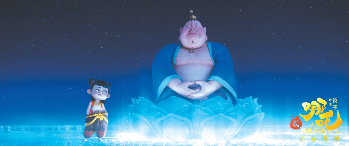 但與此同時,國漫崛起之路又并非坦途。在動畫電影工業水準迅速提升的同時,無法講述令人滿意的故事成了另一種“硬傷”?!段饔斡浿笫w來》之后,2023年春節檔田小鵬導演帶來了第二部作品《深?!?,但口碑和票房都不如前作。在這樣的背景下,餃子導演的第二部長片《哪吒之魔童鬧?!罚ㄒ韵潞喎Q《哪吒2》)便被寄予厚望。如今,《哪吒2》登頂中國影史票房冠軍,豆瓣評分也斷層式領先,使這一系列電影成為當代中國電影史上最成功的范例。