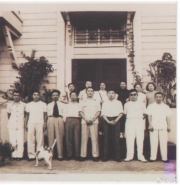 1950年回國途中,同船9位同學到俞惟樂父母家做客,前左起:俞惟麟(俞惟樂小弟)、俞惟忠(俞惟樂大弟)、潘守魯、侯祥麟、朱昂、黃星圻、俞惟榮(俞惟樂哥哥)、俞仲葵(俞惟樂父親);后左起:黃夫人郭開蘭、鄧婉嫭、佘夫人(佘守憲太太)、程太太、方梅來(俞惟樂母親)、俞惟樂