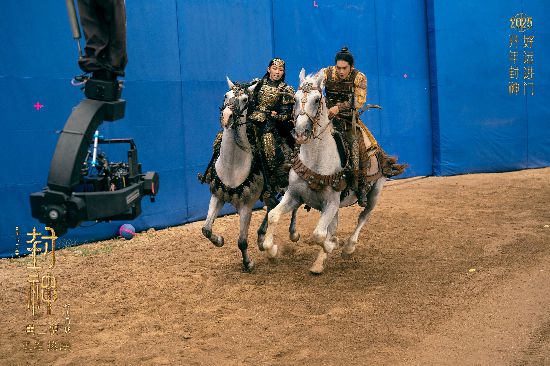 鄧嬋玉飾演者爾那茜與姬發飾演者于適在拍攝中
