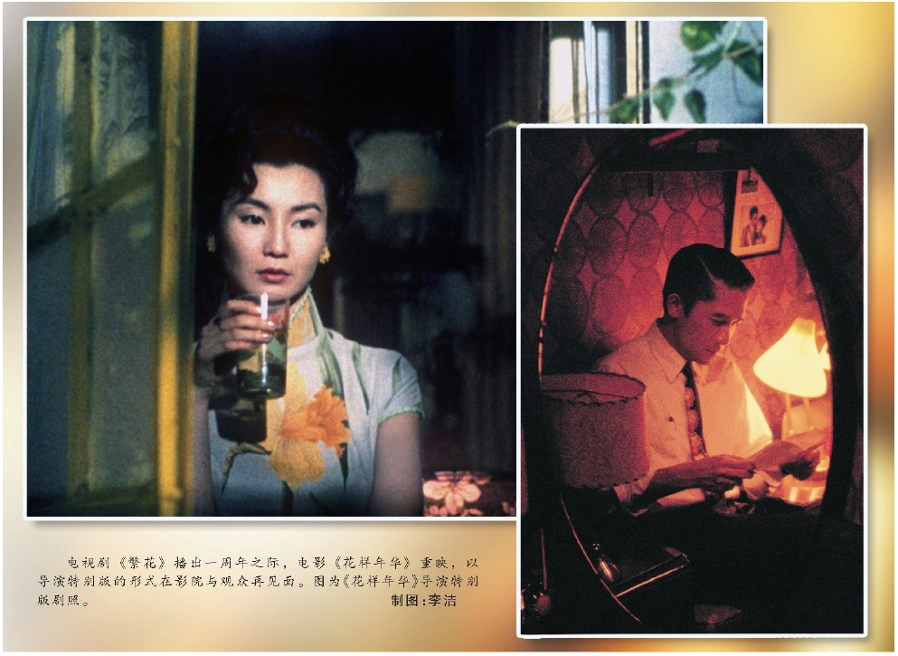 電視劇《繁花》播出一周年之際,電影《花樣年華》重映,以導演特別版的形式在影院與觀眾再見面。圖為《花樣年華》導演特別版劇照。 制圖:李潔
