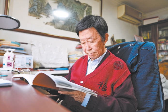 田連元酷愛閱讀,博覽群書。記者 劉英文攝
