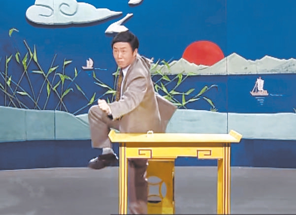 田連元穿西裝說評書《水滸傳》。資料圖